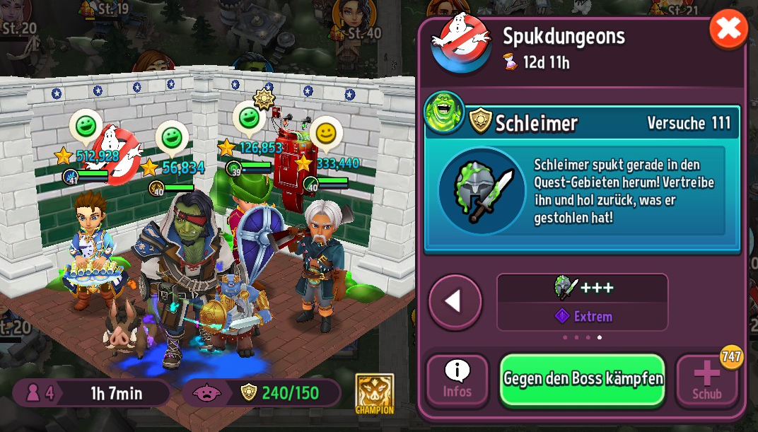 Einstiegshürde: ohne Helden mit etwa 150.000 Heldenkraft (Sternen), passenden Champions (Level 40 und mehr) und einer Handvoll Kraftverstärker muss man es erst gar nicht versuchen - die technische Hürde ist weiterhin Händlerlevel 67.