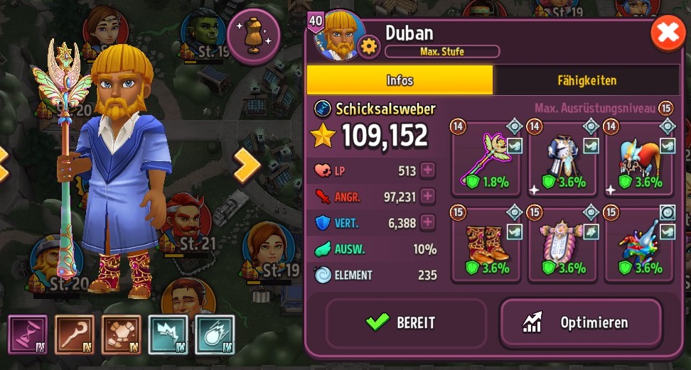 Hier macht es sich (positiv) bemerkbar, wenn man seit Spielbeginn einfach mal von jeder Klasse einen Helden ausgewählt hat oder zumindest darauf geachtet hat, von jedem Element mindestens zwei Helden zu besitzen.