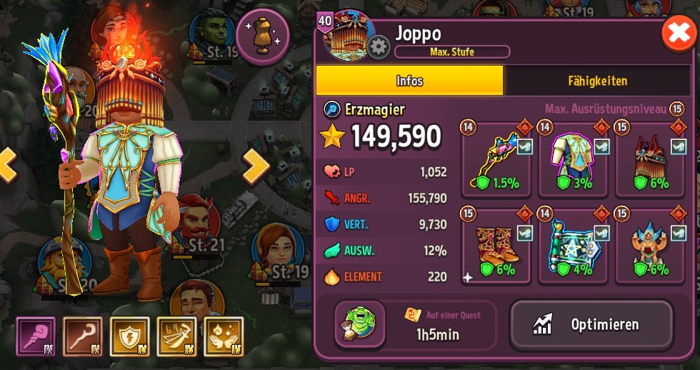 Und direkt mit der vom System generierten Auswahl an Helden wäre es ein voller Griff in's Klo geworden. Zugegeben, meine stärkeren Helden waren noch beim Bierchen in der Taverne.